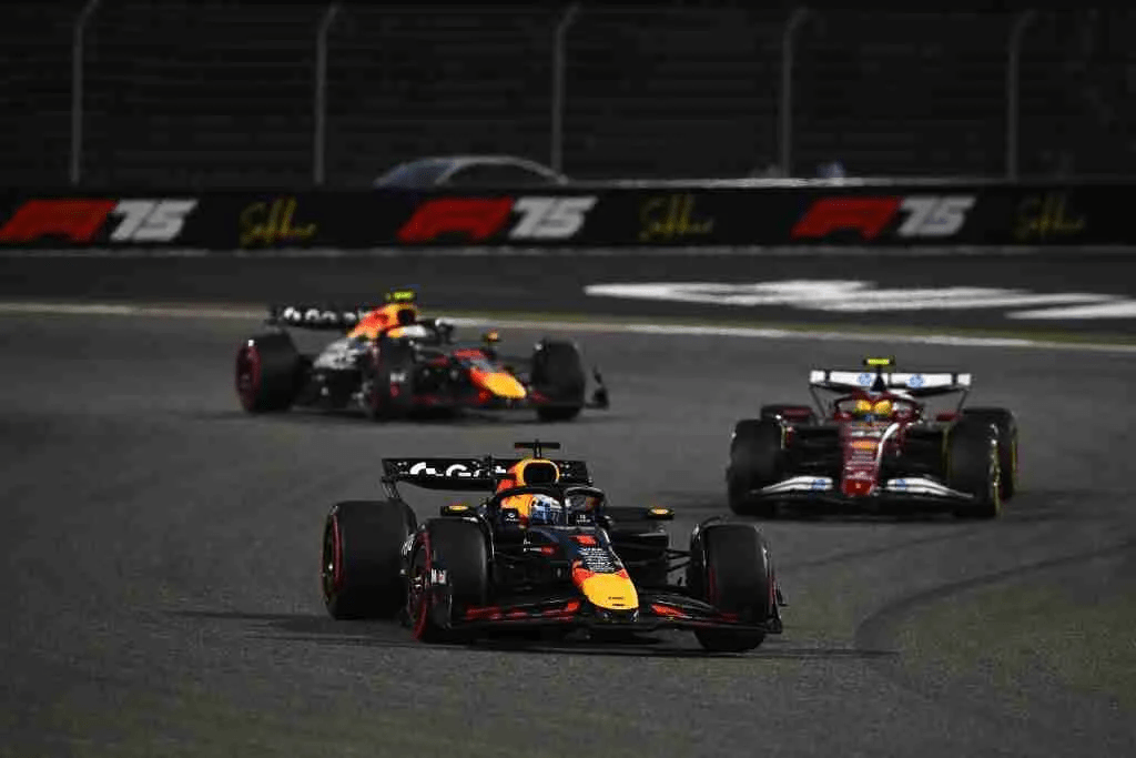 Lap 11 came the first pitstops for the leaders. Norris was followed in by Gasly and Verstappen. Though in a change of pace, it was the Red Bull Racing crew that had issues. The light that hangs above the box, telling the drivers went to go was malfuntioning and permanently showing red with a blinking yellow light. Causing both Verstappen and Tsunoda to have slower stops than they needed. 4.7 for Verstappen and 4.2 for Tsunoda. Not what the Red Bull Drivers needed. And at the end of lap 14, Piastri comes in for his stop, releasing the Ferrari’s as they now lead one and two here in the Bahraini night. Not a whole lot happened from here, unless you count Max complaining about overheating in the cockpit. Though we do see the first black and white flags of the race, in the direction of Hadjar and Antonelli, both of which were on their final warnings for abusing track limits around the circuit.