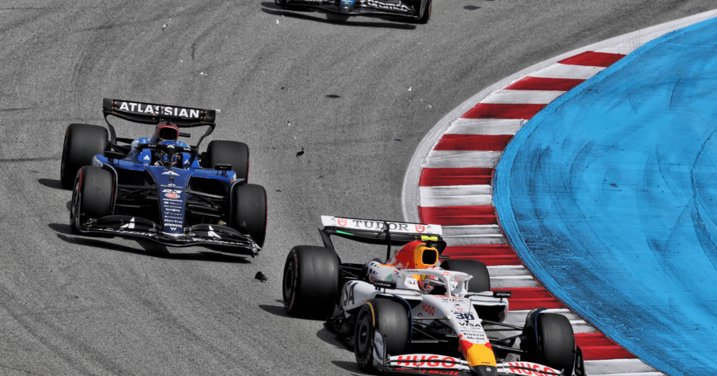 Norris came in on lap 21, after Mclaren asked Piastri is “lap 25 is possible?” to which Oscar replied with “Possible, but difficult.” sounded relaxed and chilled as ever in the lead by about 5 seconds from teammate Norris. Piastri then came in on lap 22, opening the doors for Verstappen who took the lead of the race. It was around now that heads were being raised by Verstappen and Red Bull who looked to be going for an alternative 3-stop strategy. But behind him, Lawson and Albon were coming to blows at turn 1. Lawson, who was seemingly bumping into everybody, made contact with the British-Thai driver, causing Albon to dive for the escape round on the inside of T2, and maintaining his position ahead of Lawson. The next lap, Lawson went for the move again, making it clean until Albon made contact with Lawson and broke his front wing again. It was then that he was informed by the team to “box to retire the car”. I suspect they didn’t have anymore front wings left. But on his way in, Albon was handed a 10-second time penalty for causing a collision with Lawson, meaning he had to serve the penalty and go around for another lap before retiring as to avoid a grid penalty for the next time out in Montreal.