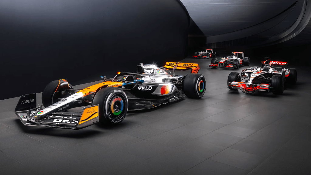 But what can we expect this weekend? Well Mclaren have unveiled yet another ‘Chrome’ livery for this years British Grand Prix. And it’s certainly a looker. We like it alot here at Heroics Into Saint Devote. With more chrome on the engine cover and sidepods, it really pays homage to Mclaren’s 2008 Vodafone-liveried MP4-23, which Lewis Hamilton drove to victory in Silverstone. Mclaren took over Trafalgar Square on Wednesday to unveil their challenger for the plaudits this year, infront of a sea of papaya fans.
